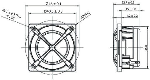 This 40 mm 4 ohm compact premium micro transducer is designed for computer, television array, and similar applications. It features a neodymium magnet, a light aluminium cone, and a high-temperature polycarbonate frame. The PMT family's transducers feature low resonant frequencies, low THD and a full range bandwidth.