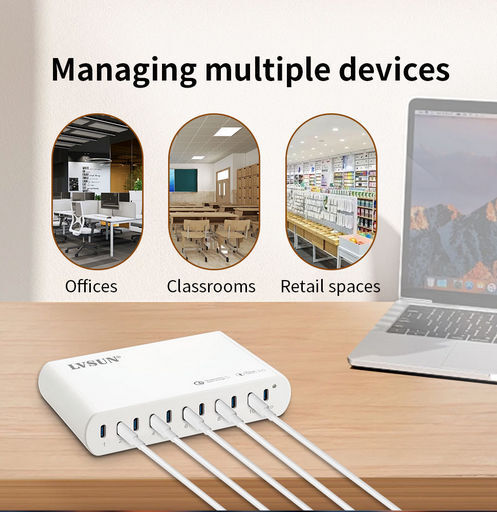 - 10 USB-C charging ports can charge 10 sets of smartphones or iPads simultaneously.