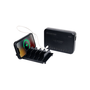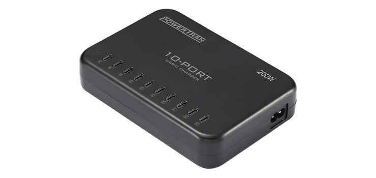 This USB-C charger has 10 USB-C ports that can deliver up to 200W in total. It supports high-power Qualcomm Quick Charge 3.0 charging and can supply power to your tablets and smartphones at up to 5V 3A, 9V 2A, 12V 1.5A, and 15V 1.2A. It has multiple intelligent safety protection functions, including over-current, over-voltage, short-circuit, and over-temperature protection, to save your devices from damage. Suitable for home and business environments where you need fast charging for multiple smartphones and tablets.