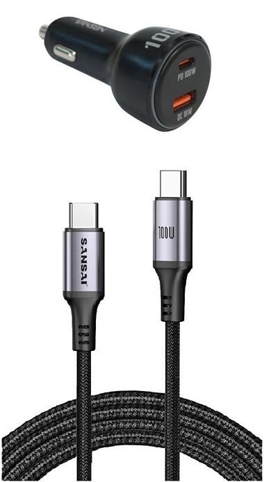 100W USB C PD Fast Car Charger with 1.2m USB Chaging Cable