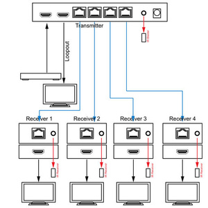 - Includes one HDMI transmitter and 4 receivers.