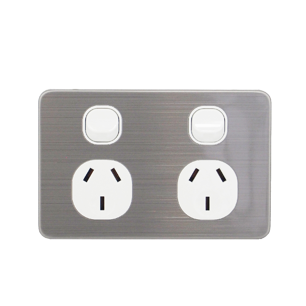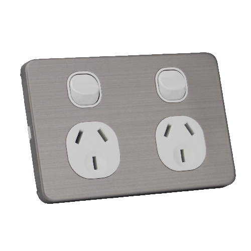 10A Horizontal Dual Power Point GPO with Stainless Steel Brushed Silver Cover
