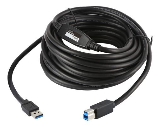 USB has a limit of 5M unless boosted. This active USB 3.0 AM to BM cables enables you to connect your computer to your USB 3.0 Type-B peripheral, such as a printer from 10 metres away. This cable has 2 built-in USB boosters to limit signal loss and deliver reliable USB connection.