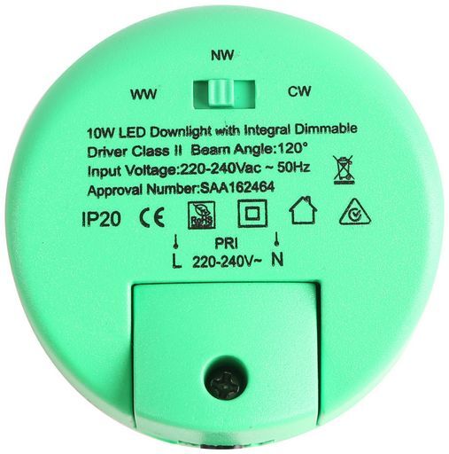 Fits standard down light sized cut-out. Includes built in LED Diver with standard 240Vac plug to a 0.6M length power lead for fast and easy installation. It can also be hard-wired by screw terminals. White tinted light dispersion lens for softer beam and multiple point Samsung LEDs gives a 120° wide beam angle. Compatible with most Universal dimmers including Trailing & Leading Edge type 240Vac mains lighting dimmer controls. Assorted colour temperatures are available to customize the interior lighting tone to suit your home or office decor. White powder coated for an attractive professional appearance. Low profile of only 65mm max. Highly efficient with low temperature losses gives more mounting location options. Heatsink cast aluminium housing back. Quality materials used. Samsung LEDs. Manufacturers 5 year warranty.