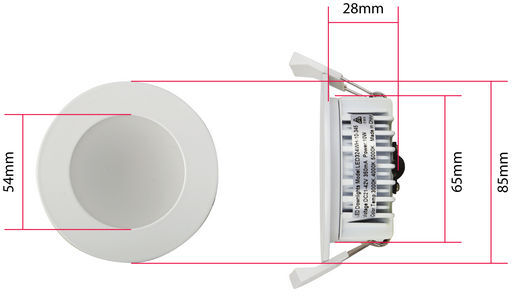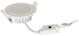 This 10W dimmable white LED down light allows you to switch your lighting between 3 different light colour temperatures. Fits a 65mm diameter cut-out. Includes an external LED driver with standard 240Vac plug to a 1.5M length power lead for fast and easy installation. It can also be hard-wired by screw terminals. There is a switch on the included driver to change the light colour temperature between daylight (5000K), natural light (4000K) and warm white (3000K).