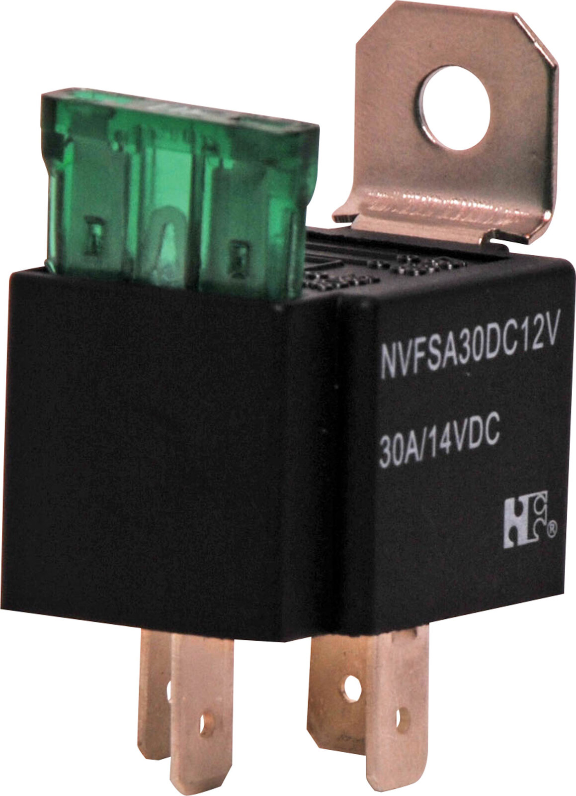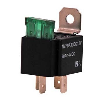 30A SPST relay. 12V DC coil. Fitted with 30A blade fuse. Suitable for automotive applications such as alarms, lights, etc.