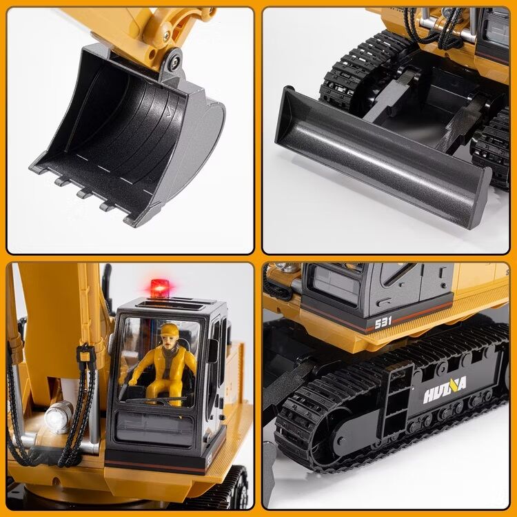 - 1x Huina 1531 RC Excavator Electric Tracked 1/16 Scale RTR
