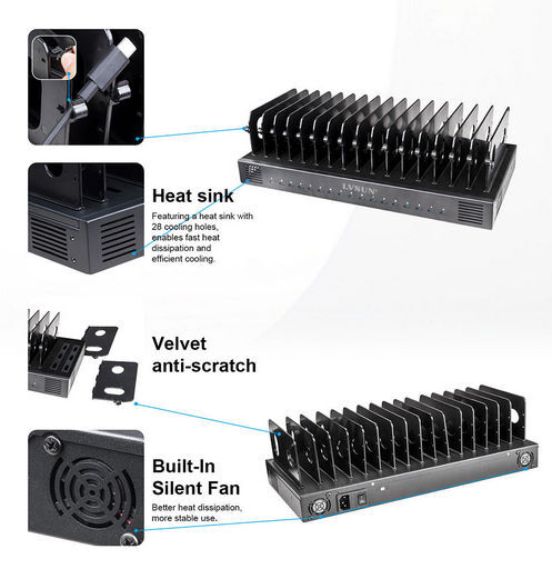 Built with industrial-grade protection against over-voltage, over-current, and short circuits, this charging station delivers a robust, safe, and high-powered charging solution for multi-device environments.
