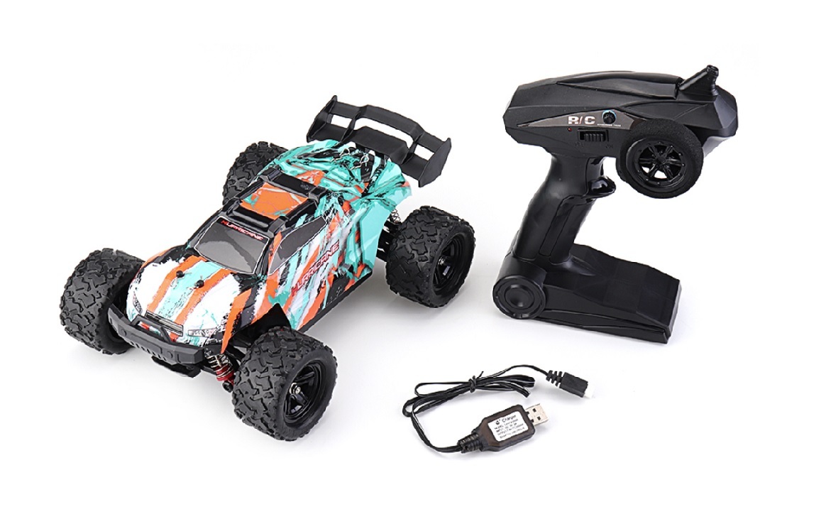 The HS18322 is a great beginner 4x4 off road RC Monster Truck suitable for off-road use. Equipped with 380 brushed motor, the 4WD Off Road RC Car can reach the speed of 36kmph. The thick plastic chassis, protective PVC shell, all-terrain tyre, as well as the independent shock absorbers ensures awesome performance and durability. The digital proportion 2.4GHz radio control system allows multiple users in the same area for awesome racing fun!