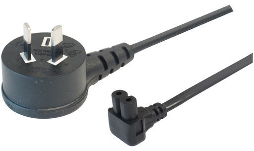 Quality light duty Australian SAA Approved 1 metre long Right Angle IEC C7 to an off-set side entry 240V Plug Power Cable for Power Adaptors and other electronics appliances.