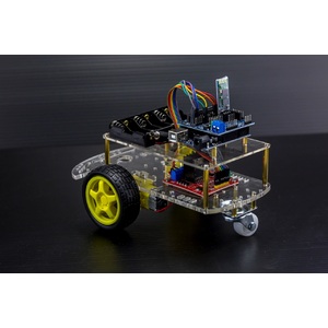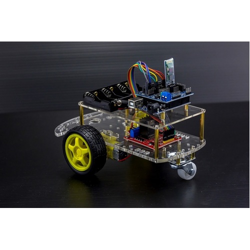 This DIY Arduino based Bluetooth robot kit is based on Arduino Uno development board. It is based on a 2 wheel drive platform integrated and is controlled wirelessly via Bluetooth through an APP. Comes complete with all necessary components and hardware and is supplied with a step by step instruction maual for assembly. This platform is upgradable and can replace, upgrade and expand the input sensors and add other functionality by adding other modules. You are able to add remote control functionality by adding Bluetooth or RF modules. You are limited by your imagination. Easy platform to assemble and is a fun way to get into Arduino and robotics.