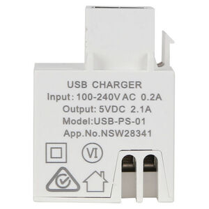 Add USB power to your keystone wall plates with ease. This 5V 2.1A USB keystone charger module snaps into standard keystone wall plates to allow you to charge your USB device from the wall plate. It accepts 100-240V AC input. Compatible with Apple iOS and Android device. Includes keystone to Clipsal adaptor to install on Clipsal compatible wall plates.