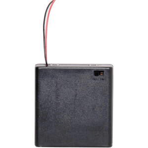 24 November 2022This case holds 4 AA batteries securely, with a latched base and provision for a securing screw. The switch on the lid operates with a firm movement and is marked with raised lettering. The switch rating is not known. Internal wiring is by metal strip. Corrosion resistance of the metal components is not known, but as with any battery case it is sensible to keep it as dry as possible. Lead length is ~150mm: the ends are bright and clean and can be soldered or crimped. The case is made to be as small as it can be, so if batteries are charged in-situ then the charging rate should be moderate. AAA batteries will fit with enough tension to make an adequate circuit. It would be difficult to make the case water resistant, as the lid includes a cutout for the switch and the base is open at one end. Note that the cover securing screw is not included. The cover closes firmly without it, but it seems like a penny-pinching oversight. The required screw is 2mmx8mm with a 0.65mm(?) pitch