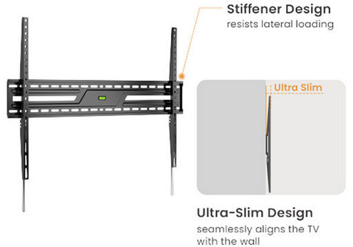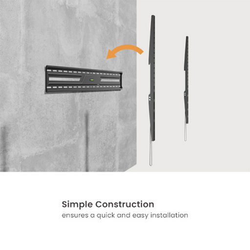 Designed for modern aesthetics and maximum functionality, this wall mount provides a sleek and sturdy solution for securely mounting large-screen TVs to the wall. The ultra-slim design aligns the TV seamlessly to the wall. Simple construction makes installation quick and easy. Automatic spring lock helps TV mount snap into place for added security. Ideal for living rooms, bedrooms or even commercial spaces, this mount supports a wide range of TV sizes and brands, ensuring a perfect fit for most screens.