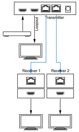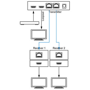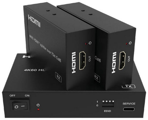 4K HDMI over CAT6 Splitter Extender Kit PtM, 1x Transmitter to 2x Receivers, Range up to 60M (4K)