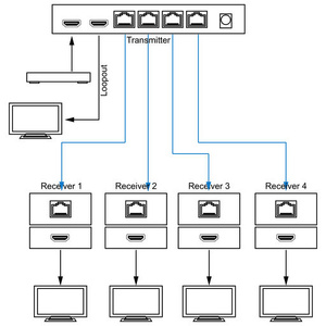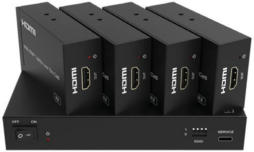 - Includes one HDMI transmitter and 4 receivers.