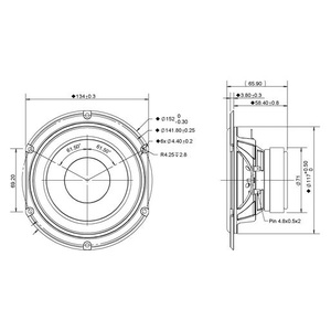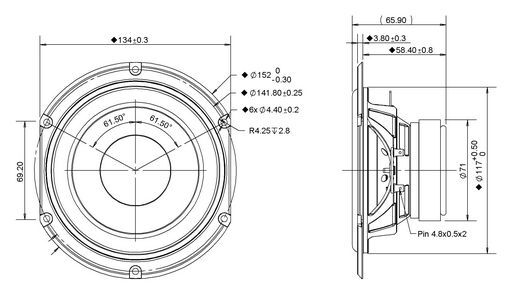 The Peerless P830856 5¼″ SDS woofer features a treated paper cone, rubber surround, and a truncated steel frame for tight driver spacing. It offers low resonant frequency performance and is ideal for compact speaker systems requiring smooth and controlled low-frequency output.
