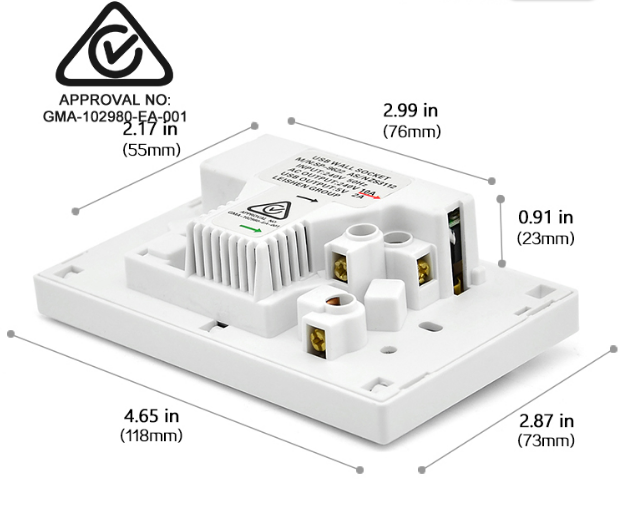 This USB Wall Plate replacement wall plate is a standard wall plate size, and easily replaces existing power points, enabling you to perform high speed charging of electronics devices such as smartphones and tablets.