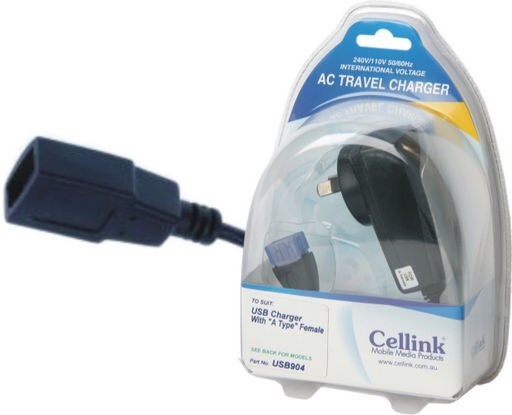 This 5V DC 1A Wall Charger has a hard wired cable with a USB A Socket for charging USB devices with a USB A plug.