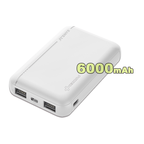 6,000mAh Compact Dual USB Charging Power Bank - White
