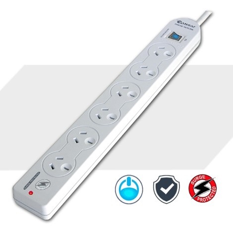 6 Outlet Mains Power Board with Surge and Overload Protection