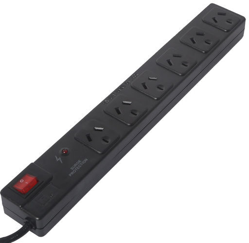 Black 6 Outlet Power Board with Master Switch for the home or office