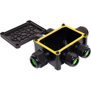 These weatherproof junction boxes with hinged lid offer secure protection for cable joins from moisture and dust ingress. Included with each box are cable gland entries and heavy duty screw terminal connection for joining cables. Suit cable size 6-9mmØ. Screw terminal conductor area, 0.5-6mm2 (19-9AWG). UL94V-0.