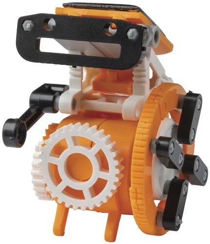 A fun and inspiring way to teach kids about solar power and robotics. There are eight unique robots to build that drive, walk or roll thanks to the solar-powered motor and gears. No batteries are required, simply operate under direct sunlight. 194 Pieces. Supplied with a detailed instruction manual. Rec-ommended for ages 8+.