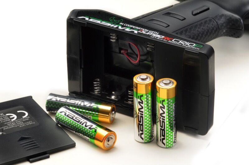 Transmitter supports 4* AA batteries or 2S LiPo battery (Art. 4140015) as power supply