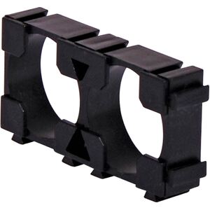 Double 18650 lithium battery holder in a rectangular configuration. Ideal for installation in compact high power, portable devices. Can be configured for larger packs using unique interlocking design. Also compatible with the triple model TA0935.