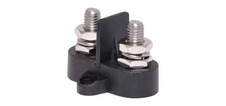 This Dual Black M8 Power Distribution Post is a heavy duty stainless steel post that is mounted on a moulded plastic base. Terminals are not linked, suitable for individual termination. 48V DC max.