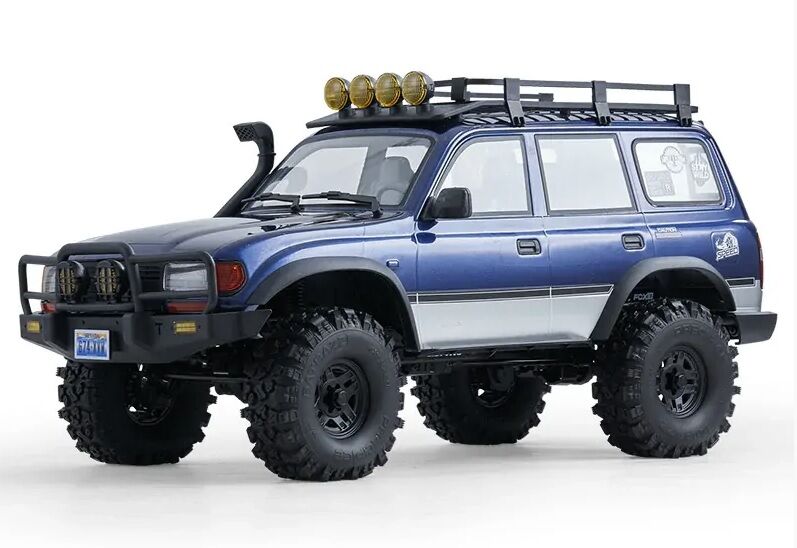 The Toyota Land Cruiser LC80, originally developed in the early 1990s with roots from the 1980s, stands out for its high-quality appearance and durability. FMS uses PC material for the body and employs a two-tone spray paint with silver powder for a shimmering effect under light. The vehicle features mirrors, waders, a highly detailed interior with a dashboard, and is equipped with lighting components powered through a magnetic interface for easy activation via remote control. It also includes a luggage rack, off-road lights, and a rear climbing ladder.