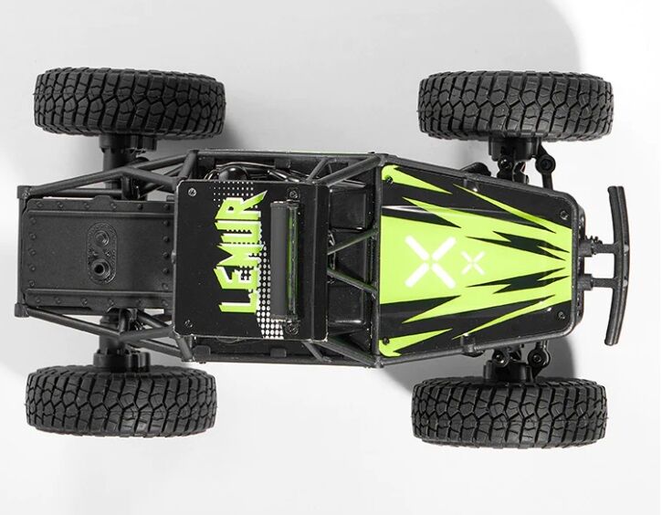 Maneuvering with ease in complex terrains (thanks to the 4-link suspension and chassis), the Lemur employs a high-strength, one-piece molded nylon frame built upon the FCX high-performance climbing chassis. This fusion of the 4-link suspension provides exceptional 'waist-twisting' capability when tackling rugged rocks or navigating through dense jungles, allowing the vehicle to effortlessly showcase outstanding control performancein intricate landscapes.