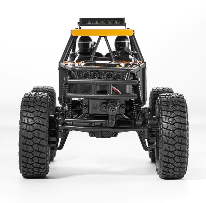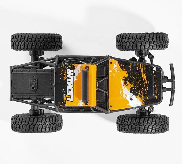 Maneuvering with ease in complex terrains (thanks to the 4-link suspension and chassis), the Lemur employs a high-strength, one-piece molded nylon frame built upon the FCX high-performance climbing chassis. This fusion of the 4-link suspension provides exceptional 'waist-twisting' capability when tackling rugged rocks or navigating through dense jungles, allowing the vehicle to effortlessly showcase outstanding control performancein intricate landscapes.