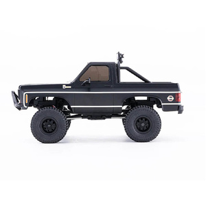 The FMS FCX24 K5 Blazer, officially licensed by General Motors LLC, delivers the perfect combination of realistic detail and dynamic performance. This version, the all-black brushless edition, features several unique design upgrades. Its front and rear bumpers, grille, and wheels are painted entirely black, giving the model an aura of elegance and mystery.