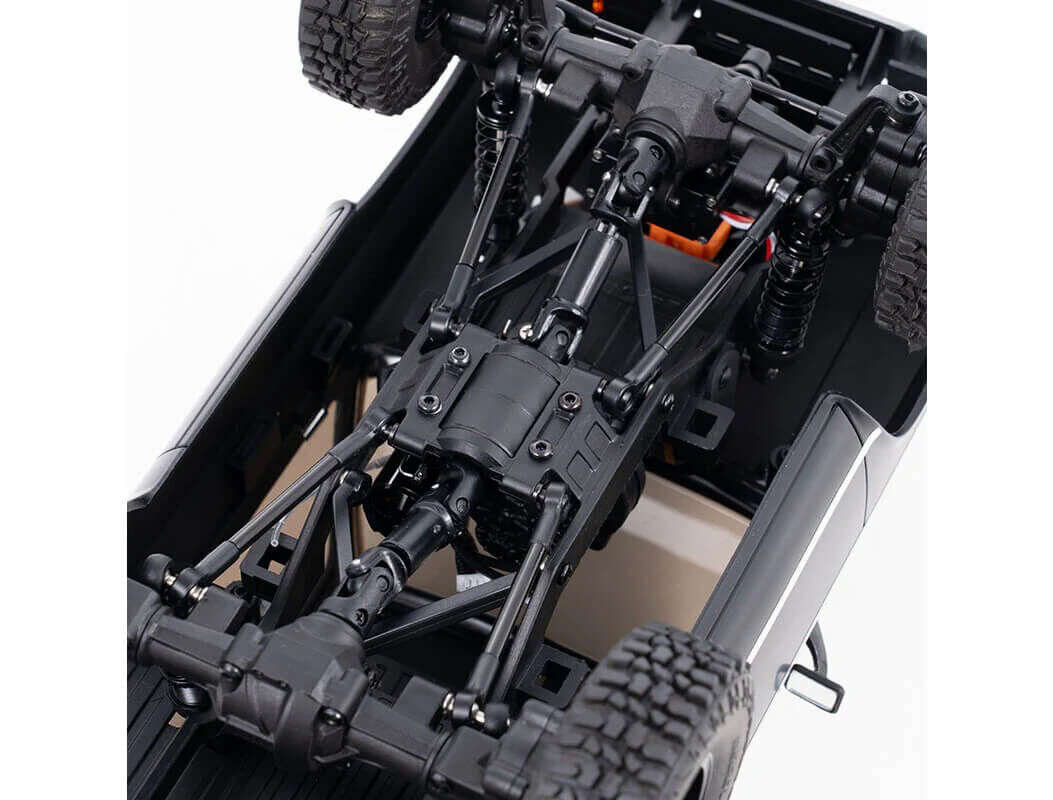 The chassis is built on the FCX24 platform and retains the micro two-speed mechanical transmission from earlier K5 models. This version introduces a brand-new 1212 outrunner brushless motor, delivering significantly greater torque and exceptionally smooth, precise linear control. The outer-rotor design reduces noise and vibration while improving high-speed performance and crawling capability.