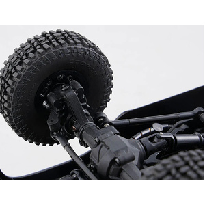 The key chassis components include metal oil-filled shocks, links, ball bearings, and gears, ensuring maximum strength and crawling performance.