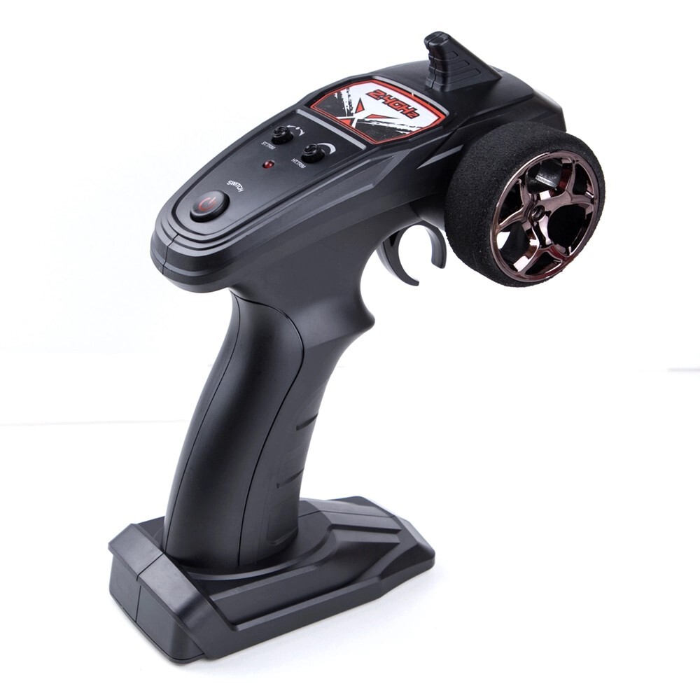 Blindingly quick 1:16th scale remote control off road dune Truggy. This remote control 4 x 4 off road truggy car has a powerful 390 size brush motor and is capable of reaching speeds up to 36kmh. Radion control Truggy comes with a 2.4GHz gun style remote control with a range of over 100 metres. RC car that is equipped with 2.4GHz digital proportion control for accurate and precise steering. Also has four-wheel independent suspension for stable drive over all types of terrain.