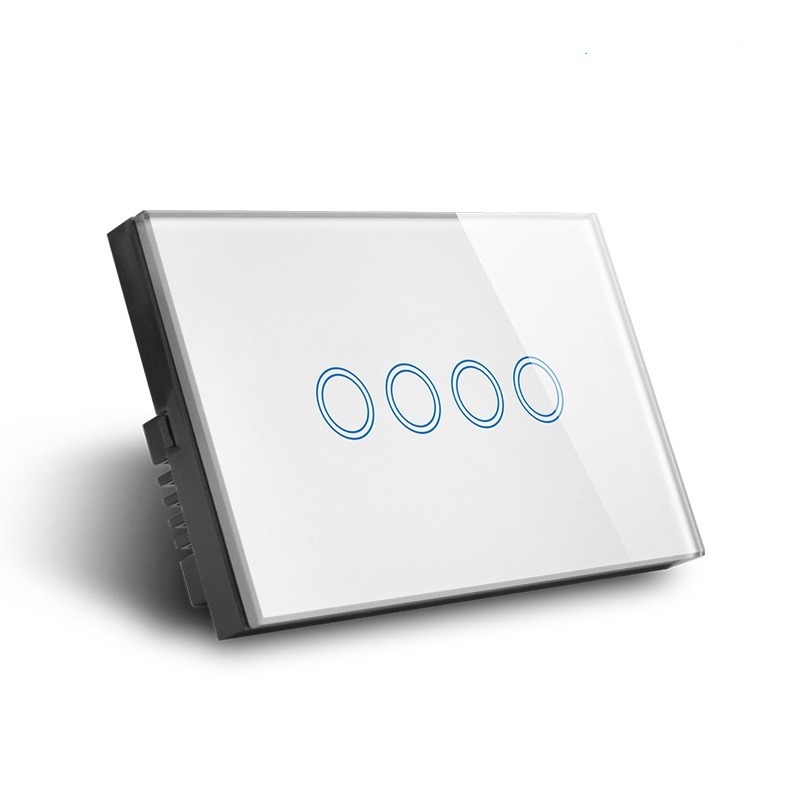 Add a touch of elegance to your home or office with our Glass Panel Touch Series Four Gang Light Switch. The high quality crystal tempered glass panel design is guaranteed to last and will not fade. Capacitve touch with a soft blue LED indicator that is not bright; providing a dim glow to alow you to locate the switch easily in the dark.
