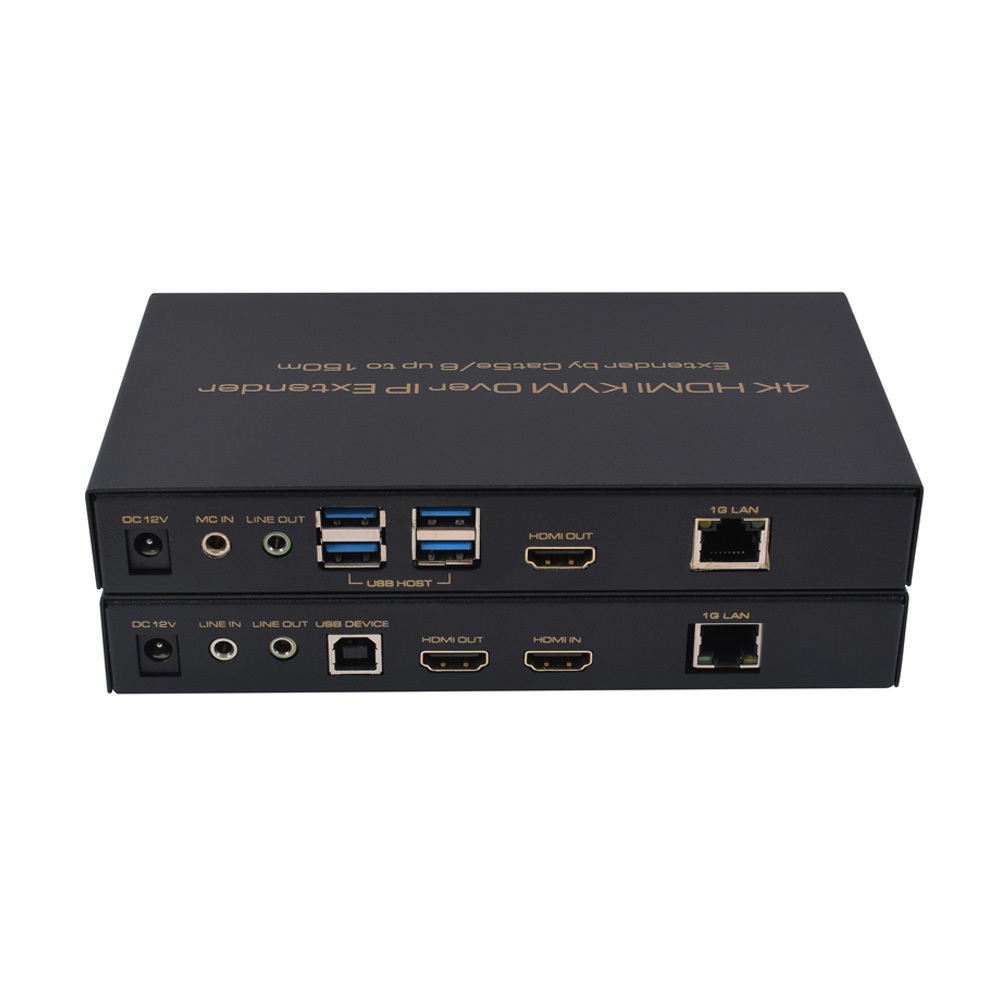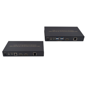 This HDMI and USB KVM Over IP Extender provides a convenient solution for remotely controlling a PC or laptop via CAT 5 or CAT 6 cables or IP via a 1G Local Area Network switch. Supports HDMI 1.4v 4K HDMI video signals and has IR extender functionality. Has 4 USB ports for keyboard, mouse, flash drive and usb peripherals connectivity. HDMI 1.4 version.