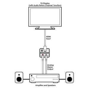 Designed to extract the audio signal from an HDTV’s HDMI ARC (Audio Return Channel) connection and convert it to an analogue stereo signal, allowing the connection of an HDTV with HDMI-only output to non-HDMI equipped amplifiers, AV receivers or active speakers. It supports HDMI audio sampling rates up to 192 kHz and analogue stereo (2-CH) audio output.