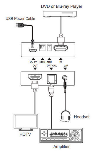 - Extracts the HDMI audio signal from an HDTV’s ARC connection and converts it to an Line-level analogue stereo output