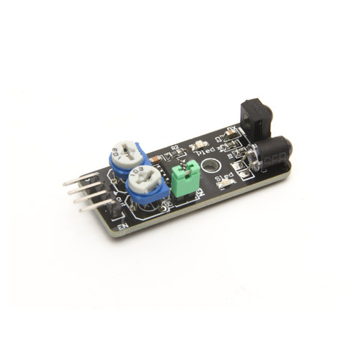 Infrared obstacle avoidance sensor is designed for the design of a wheeled robot obstacle avoidance sensor adjustable distance. This ambient light sensor adaptable, high precision, having a pair of infrared transmitter and receiver, launch tube infrared emission of a certain frequency, when detecting the direction of an obstacle (reflecting surface), is reflected infrared receiver tube reception, when the indicator lights up, after circuit processing, signal output interface output digital signal can be detected from the knob to adjust the potentiometer. Since the operating voltage range wide, can still work under stable power supply voltage fluctuation is relatively large, for a variety of microcontroller, Arduino controller, BS2 controller, attached to the robot sensed the change to the surrounding environment.
