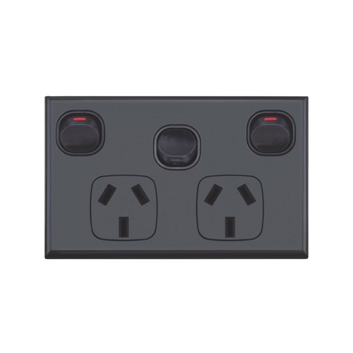 A 10A Horizontal Double GPO Power Point with an extra Switch for hard wired 240V electrical appliances..