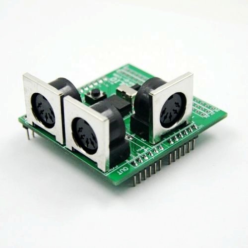 Through the MIDI adapter plate, your Arduino board or other microcontrollers can be accessed to powerful MIDI communication protocol. MIDI protocol and asynchronous serial interface has many similarities, so users can use the micro-controller UART pin to send MIDI event information. MIDI adapter plate provides MIDI - IN and MIDI - OUT connection, and MIDI THRU port. MIDI - port is light IN isolation, to prevent the ground loop. MIDI adapter plate can be installed directly like a shield at the top of the Arduino board: connect MIDI - IN/THRU to for Arduino hardware RX pin, connect MIDI - OUT to TX. It Arduino data and analog pin, power bus and the bus can transfer out. The RUN/PGM switch can let users on the for Arduino board serial port programming, without having to remove the board. Note: the three hole MIDI connector no welding on the MIDI adapter plate, but these connectors included in this product.