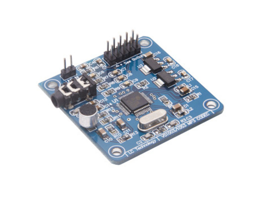 This MP3 module supports both playback and recording. An onboard microphone is used for audio in, and a 3.5mm jack provides the output for external amplified speaker connections. There is also a line-in header to use an external audio source instead of the microphone. Most projects using this device will require some form of mass-storage, such as an SD card.