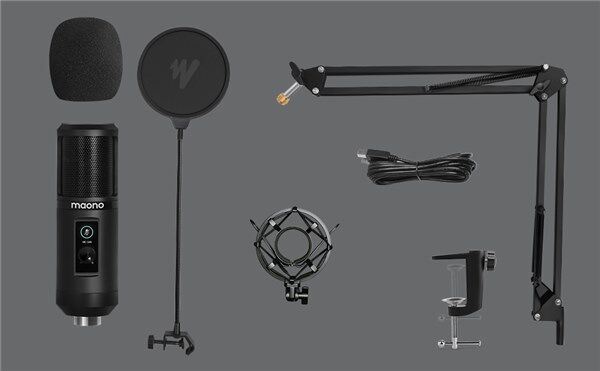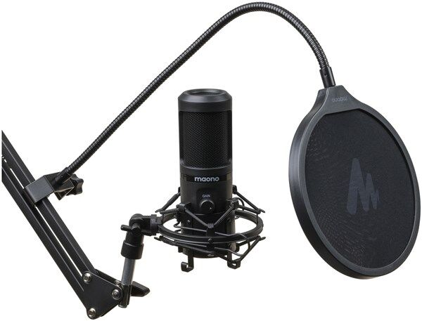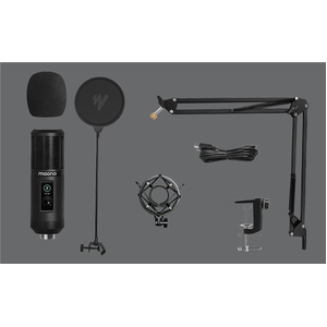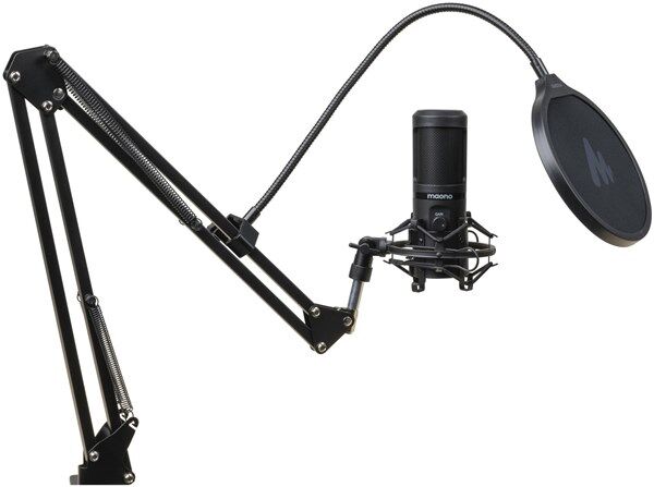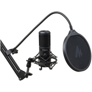 Create studio-quality podcasts, live streams, and recordings with this professional microphone. It features a premium cardioid condenser mic and professional sound circuitry to screen out unwanted background noise, a large gain knob to adjust the mic sensitivity without distortion, and a touch mute button, without the button noise. Also suitable for online meetings, chat, online teaching, live-gaming commentary, and applications where quality audio is important. Plug and play, so there’s no need for driver support, and compatible with Windows, macOS®, and PS4. Supplied with sturdy stand with adjustable arm, metal shock mount, foam windscreen, pop filter, and a 2.5m double-shielded USB lead