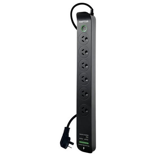 Raptor surge protected power boards have been designed in Australia to defend today's modern electronic devices from damage caused by the 240Vac mains supply. Raptor features patented surge protection with fireproof MOV's that will protect your equipment in less than 20 Nano Seconds from damaging voltage spikes. The board also includes a high power 30W USB-C PD charging port that will directly charge your devices including laptops, tablets, accessories, etc. The stylish designed Raptor has 2 x spaced sockets for larger power-packs and a 1.5M long power lead with right angled AC plug.