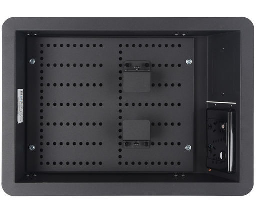 The Built Boards AV Recessed Wall Box by Built Boards is designed to be recessed into the wall cavity behind a TV. Built Boards BBWBSM is constructed of steel and finished in black texture powder coat to fall into the shadows. It is complete with a Black double powerpoint, brush plate, hardware mounting brackets and snap bushes. The wall is cut to size between studs and the unit is inserted and held in place with 4 spring clips. Built Boards BBWBSM is available in two standard sizes – the XL large enough to house the Samsung One Connect Box.