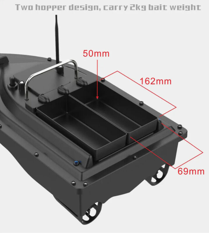 Twin Bait Bins: allowing you to target different fish species simultaneously. Prepare a strategic bait setup like never before and increase your fishing success. Crafted from top-grade ABS material, our fishing boat is free from toxic chemicals and unpleasant odors, ensuring a safe and enjoyable fishing experience for you and the environment.
